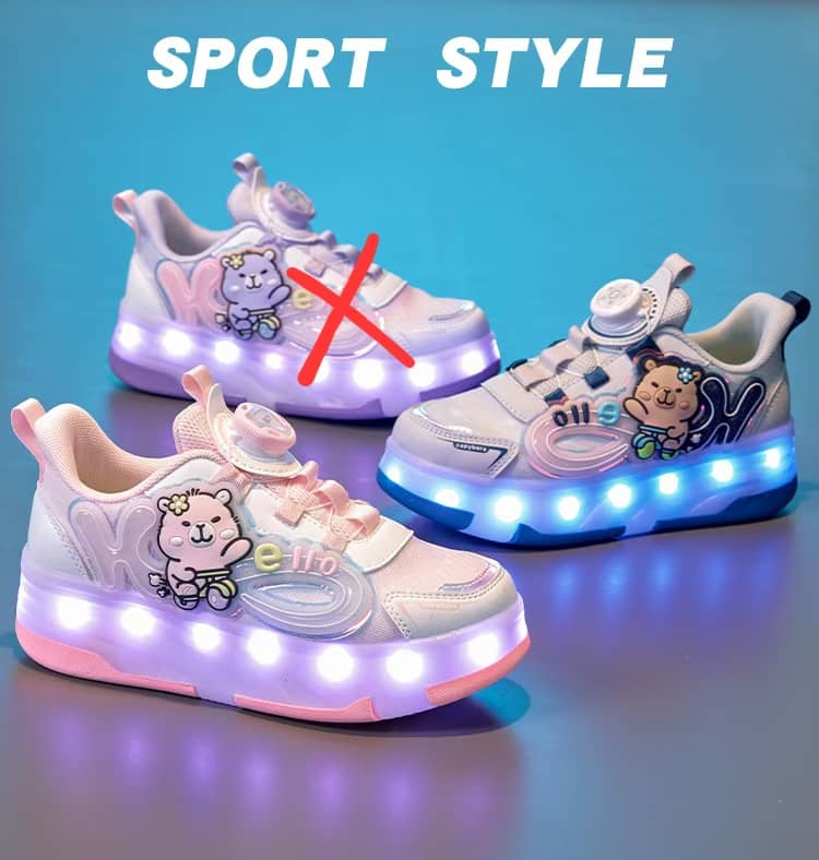کفش اسکیتی چهارچرخ LED کودک – کفش ورزشی چراغدار دوکاره (کفش + اسکیت)