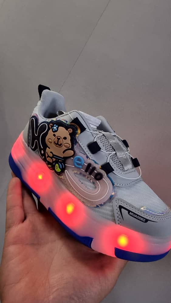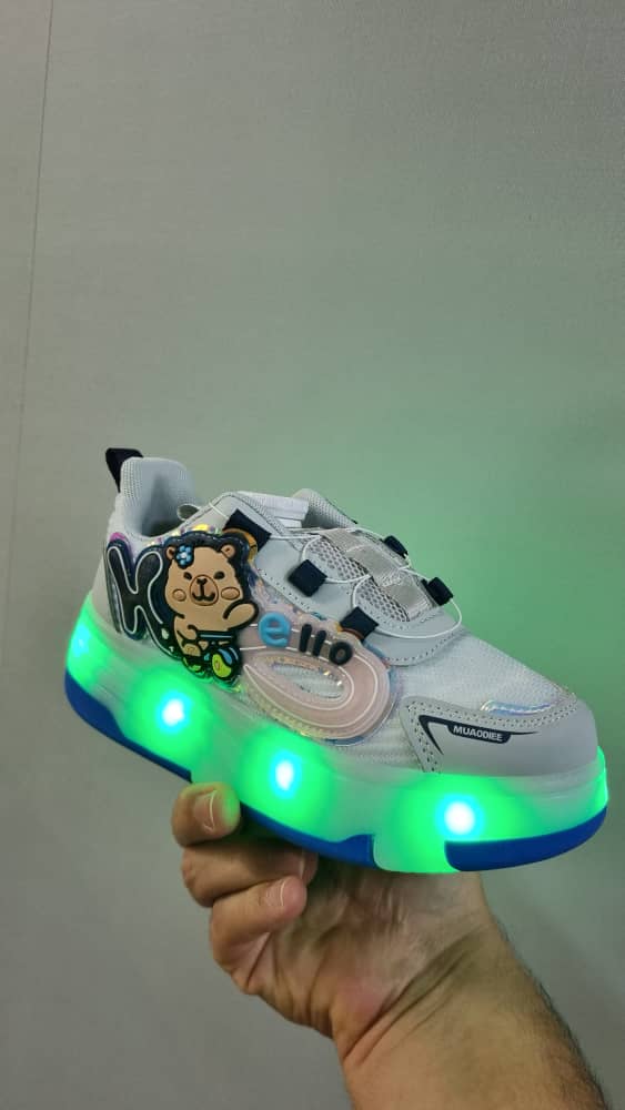 در حالت عادی، یک کفش ورزشی سبک و راحت با طراحی کودکانه و چراغهای LED رنگی است.
