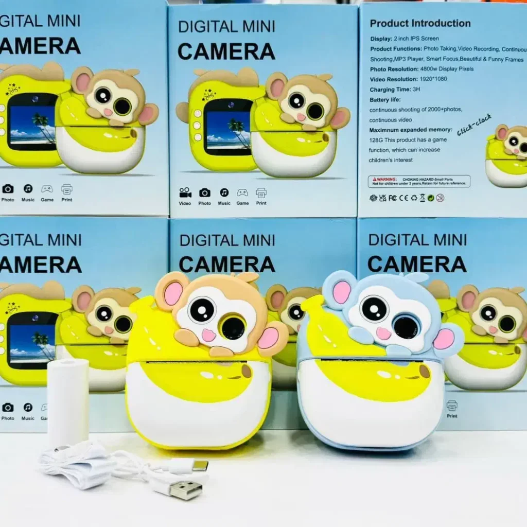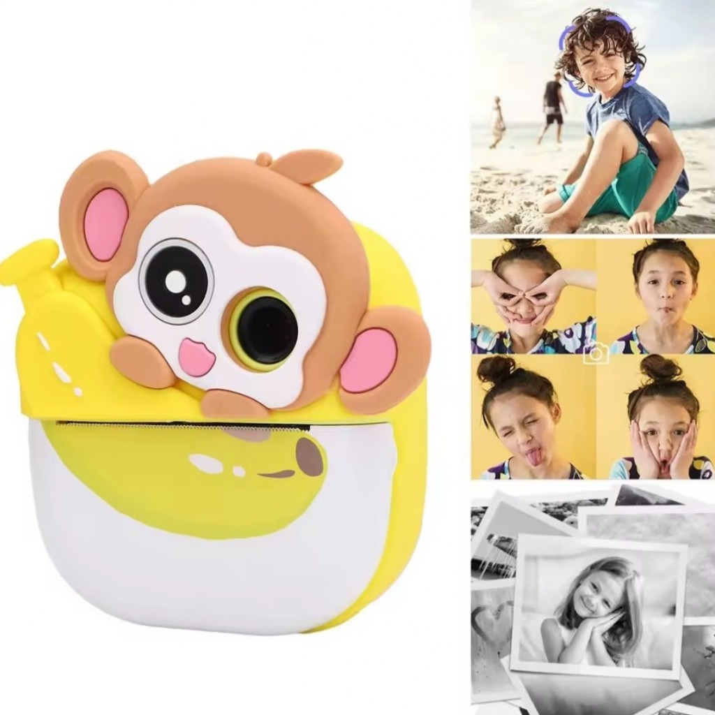 این دوربین با طراحی فانتزی و رنگارنگ به شکل میمون ساخته شده و میتواند لحظههای شیرین کودکی را در لحظه ثبت و چاپ کند — بدون نیاز به جوهر!